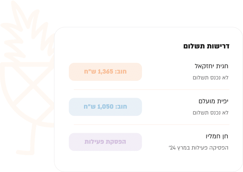 "היא אמרה שהיא תשלם שבוע הבא" הפך להיות המשפט הכי שכיח בחיים שלך, ואת כבר לא יודעת אם להיות עדינה או לאיים עם עורך דין. הלקוחה שלך שולחת לך הודעה בשישי בלילה ומצפה לתשובה בשבת בבוקר, ואת עונה כי "לא נעים לך" לעזוב אותה על הקרח.המחשבה על לפתוח עוד שיחה עם "שלום, רק לבדוק מה עם התשלום" גורמת לך לכאב בטן כל בוקר.