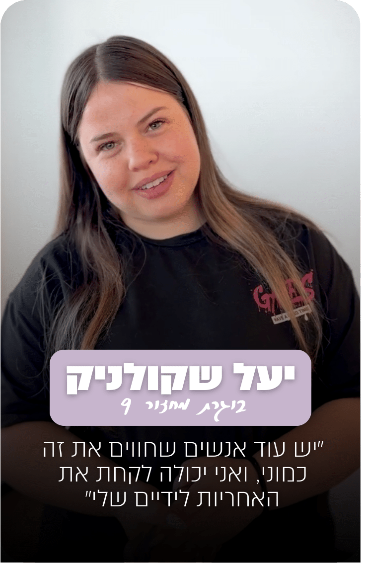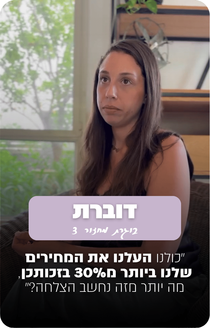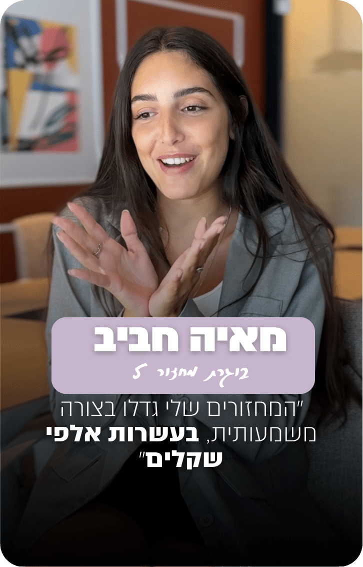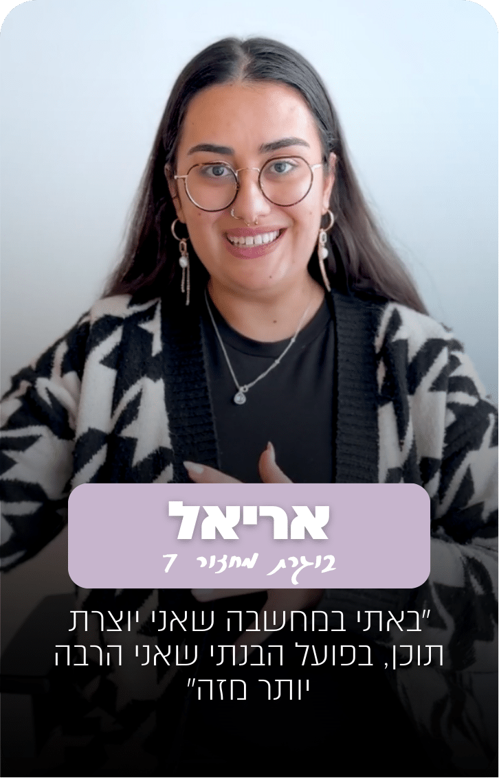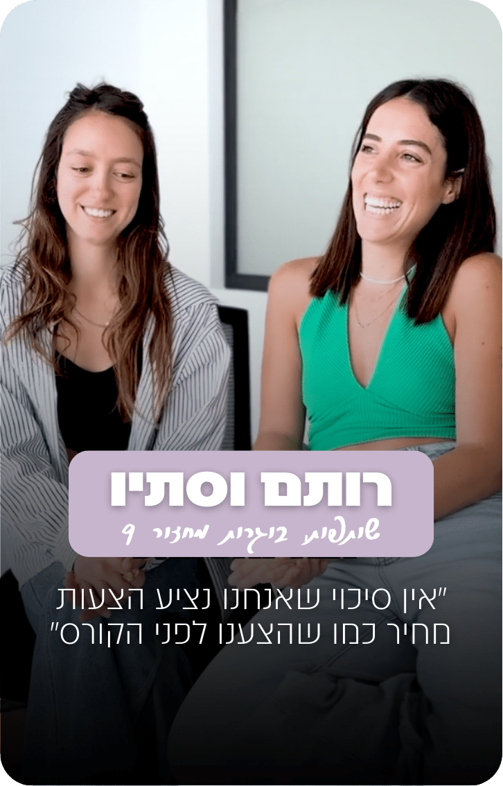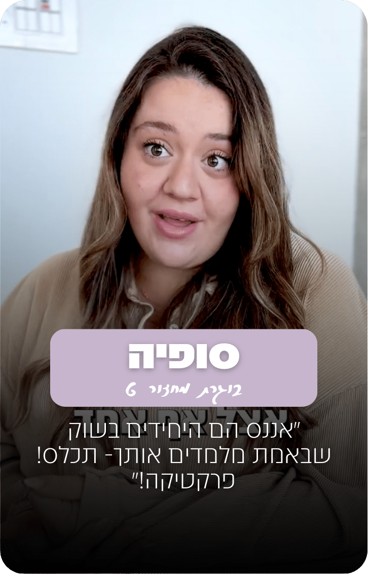 אנחנו לא נוכל להבטיח לך הצלחה כי זה תלוי גם בך ובעבודה שתשקיעי. אבל אנחנו נוכל להבטיח לך שתקבלי את כל הכלים, הידע והליווי שצריך כדי להצליח. השאר תלוי בך.