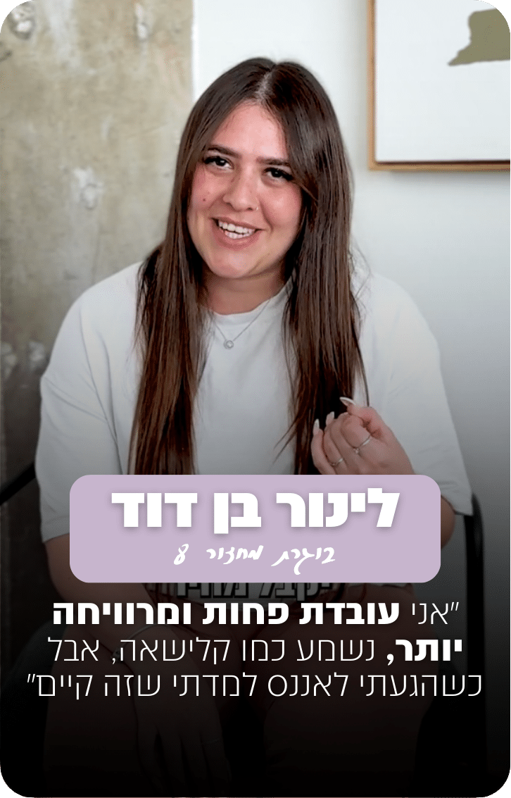 תוך זמן קצר מאוד, לינור עברה מלגבות 1,500 שקל לגבות 4,500 שקל מכל לקוח – עם פחות עבודה ויותר כבוד. היום יש לה רשימת המתנה של לקוחות שרוצים לעבוד איתה.