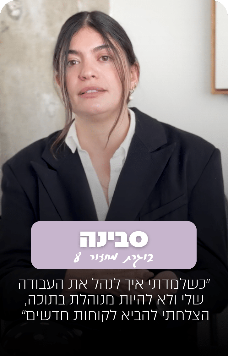 לא עוד לקוחות שמתקשרים בכל שעה, ולא עוד תחושה שהעסק שולט בחיים שלך. יש לך מערכות, גבולות ותהליכים שמאפשרים לך ליהנות מהעסק במקום לסבול ממנו.