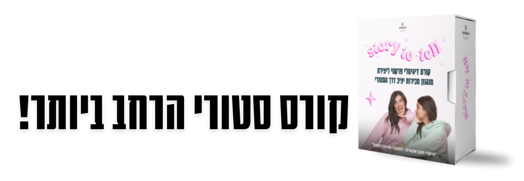 קורס הסטורי הרחב ביותר במדינה!!! הקורס היחיד שילמד אתכם איך אשכרה אפשר למכור בסטורי, איך להשיק ולשמור על סטורי חי ופעיל, כל הכלים שיסבירו לכם איך סטורי באמת עובד!!