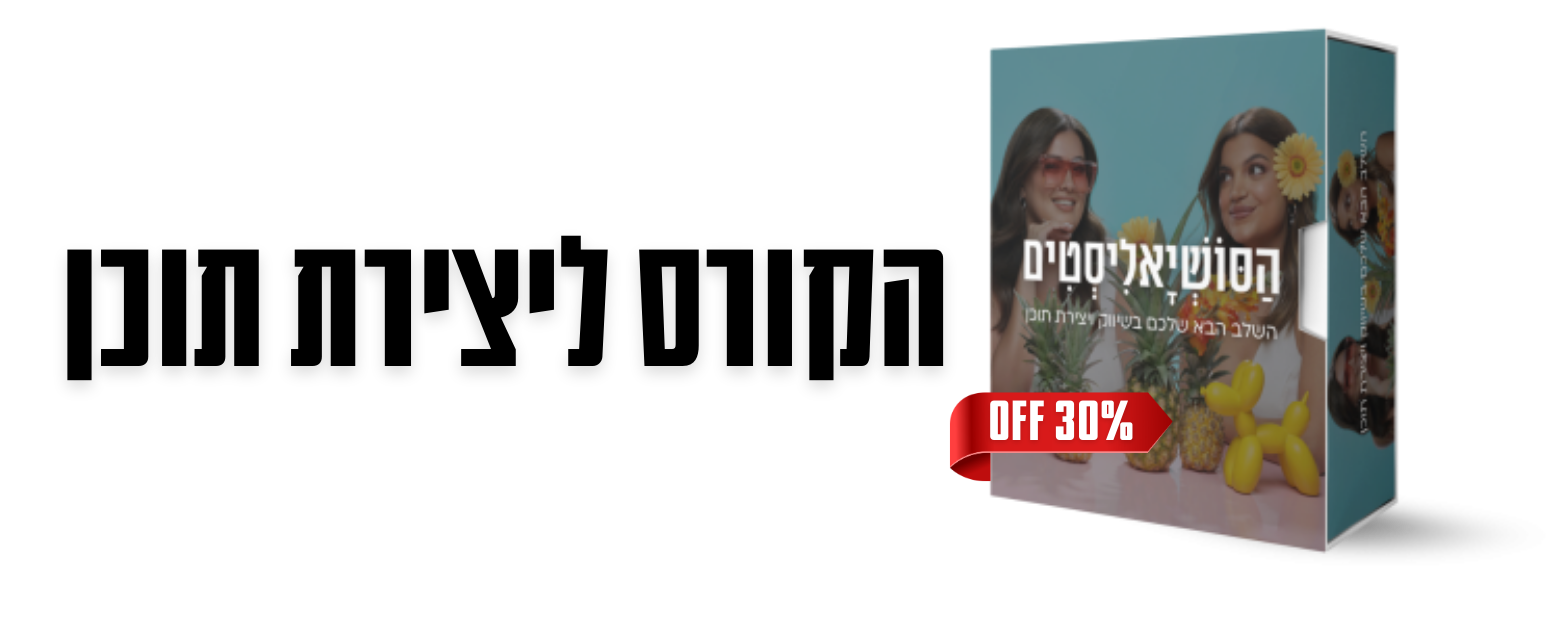 הקורס המדיוק ביותר ליוצרות תוכן בארץ שעוסקות בתחום ורוצות לעלות לרמה הבאה! ואיך אנחנו יודעות את זה? כי הוא כולו נכתב על סמך החוויות האישיות שלנו, הקשיים והשיעורים שאנחנו עברנו על הבשר שלנו, וכל הפעולות שהביאו אותנו להפוך לאחת מסוכנויות הסושיאל המובילות בתחום, כל מה את צריכה כדי כדי להפוך למשווקת אמיתית ולהקפיץ את העסק שלך למעלה!!